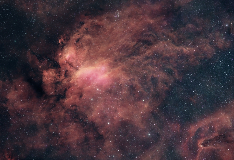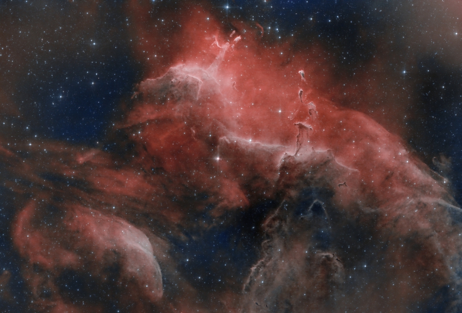 Prises de 600s et 300s (H Alpha, OIII, SII), Traitement Pixinsight, H Alpha en Rouge, OIII en Vert, SII en bleu